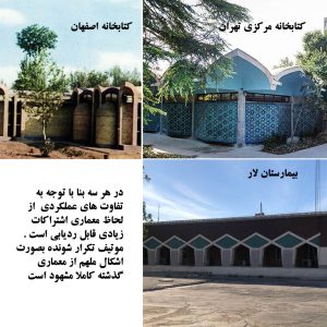 در اولین مواجهه با سیمای بیمارستان لار، احساسی از ایرانی بودن و فرهنگ ایرانی دریافت می‌شود. این کیفیت معماری بسیار ارزشمند و خلاقانه کاملا هدفمند و از پیش فکر شده است، یکی از مهمترین الگوهای مفهمومی برای تکرار و الهام در بناهای بعدی شهر خواهد بود. یک نقشه راه معمارانه و طرز فکر MIND SET برای ساخت‌های امروز و فردا. این کیفیت نوآورانه و معمارانه را در بنای بانک ملی لار نیز قابل ردیابی است.