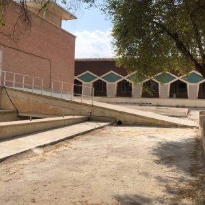 بدلیل شیبدار بودن زمین برای حل مسئله‌ی ترازهای ارتفاعی به طور گسترده از پله و برای خودروهای اورژانس از رمپ استفاده شده است.
